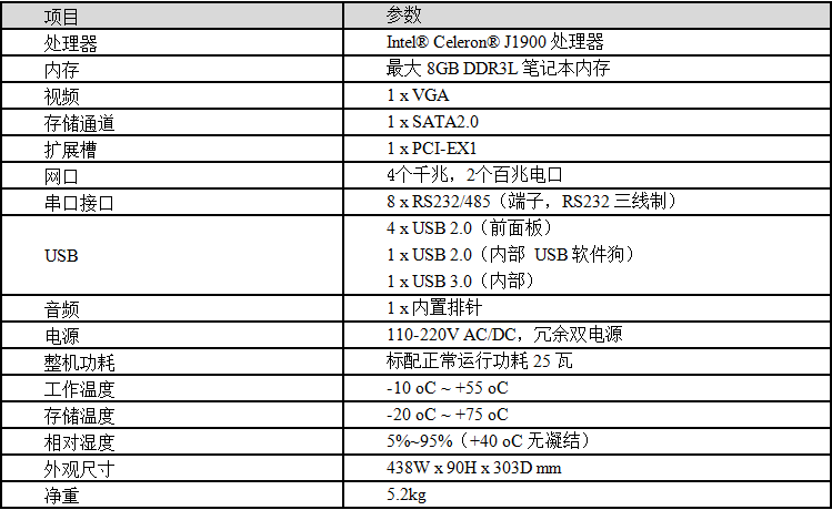JSLK-8000支持Intel Bay Trail J1900,?四核2.0GHz CPU,计算性能高,可满足数据通信网关机对处理器计算性能的要求。